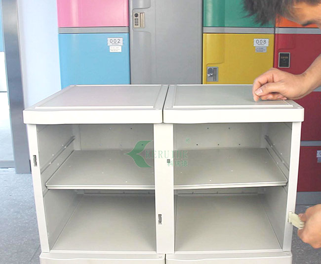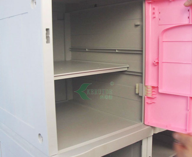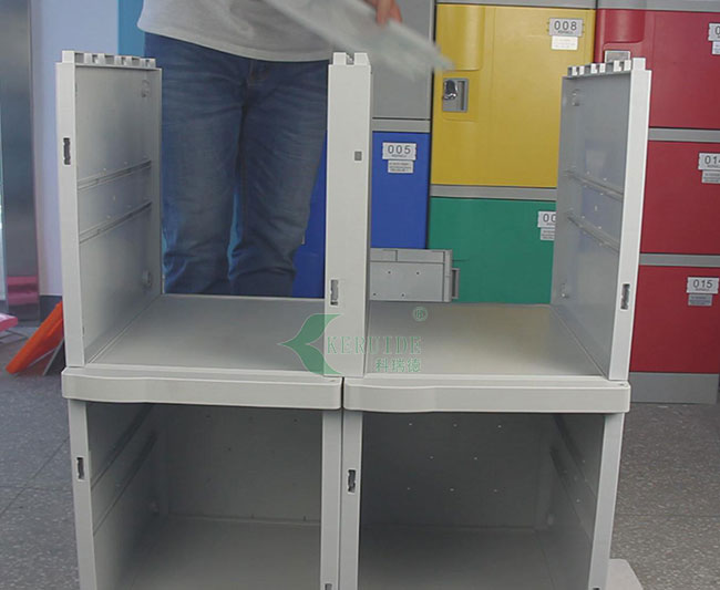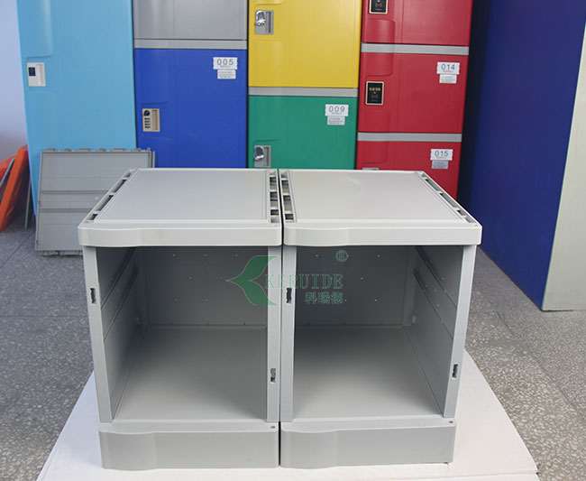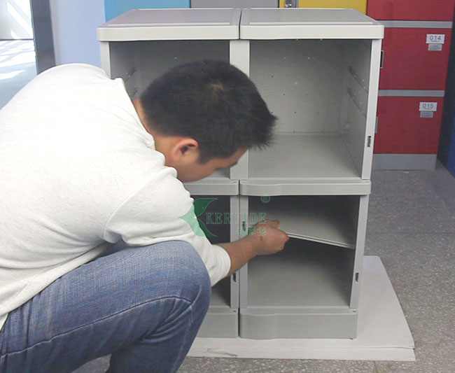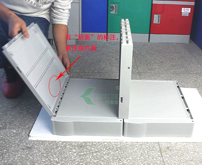 第三步:安裝塑料更衣柜的上下板,對(duì)應(yīng)卡槽直接插入。