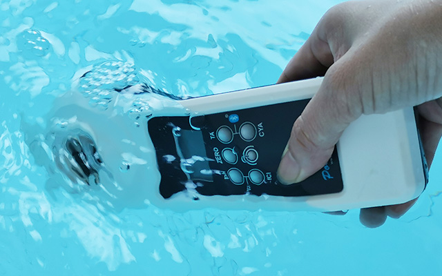 普通的速測盒是檢測不了氰尿酸的,可以使用帶有電子讀數(shù)的水質檢測儀,普量水質檢測儀是一款多參數(shù)手持式電子光度計,能檢測池水:氰尿酸、余氯、總氯、pH、化合氯等13個項目指標,準確可靠,使用方便,機身自帶樣品槽,直接伸入水中取樣,整機IP68防水設計,不用擔心進水。