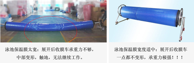 4,游泳池保溫膜太重,即使用了收膜車也難以控制,由于太重,會(huì)造成無法選擇,無法收放。