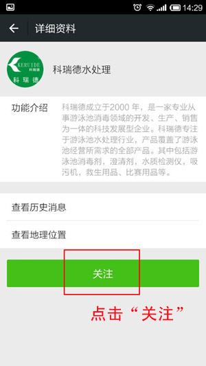 下面以科瑞德水處理為例,來了解下公眾號關(guān)注的步驟: