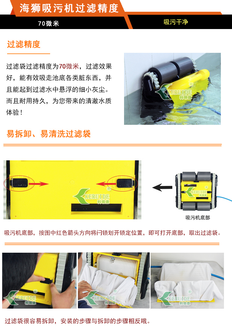 噴水并非為了好看,SJ吸污機吸污時池水從機器底部進(jìn)入,經(jīng)過過濾袋,過濾后的干凈的水會從機器頂部噴出,流回泳池。水流大,水柱高說明其吸力大,吸污強勁。而且過濾后的水依然流回泳池中,節(jié)約水資源。